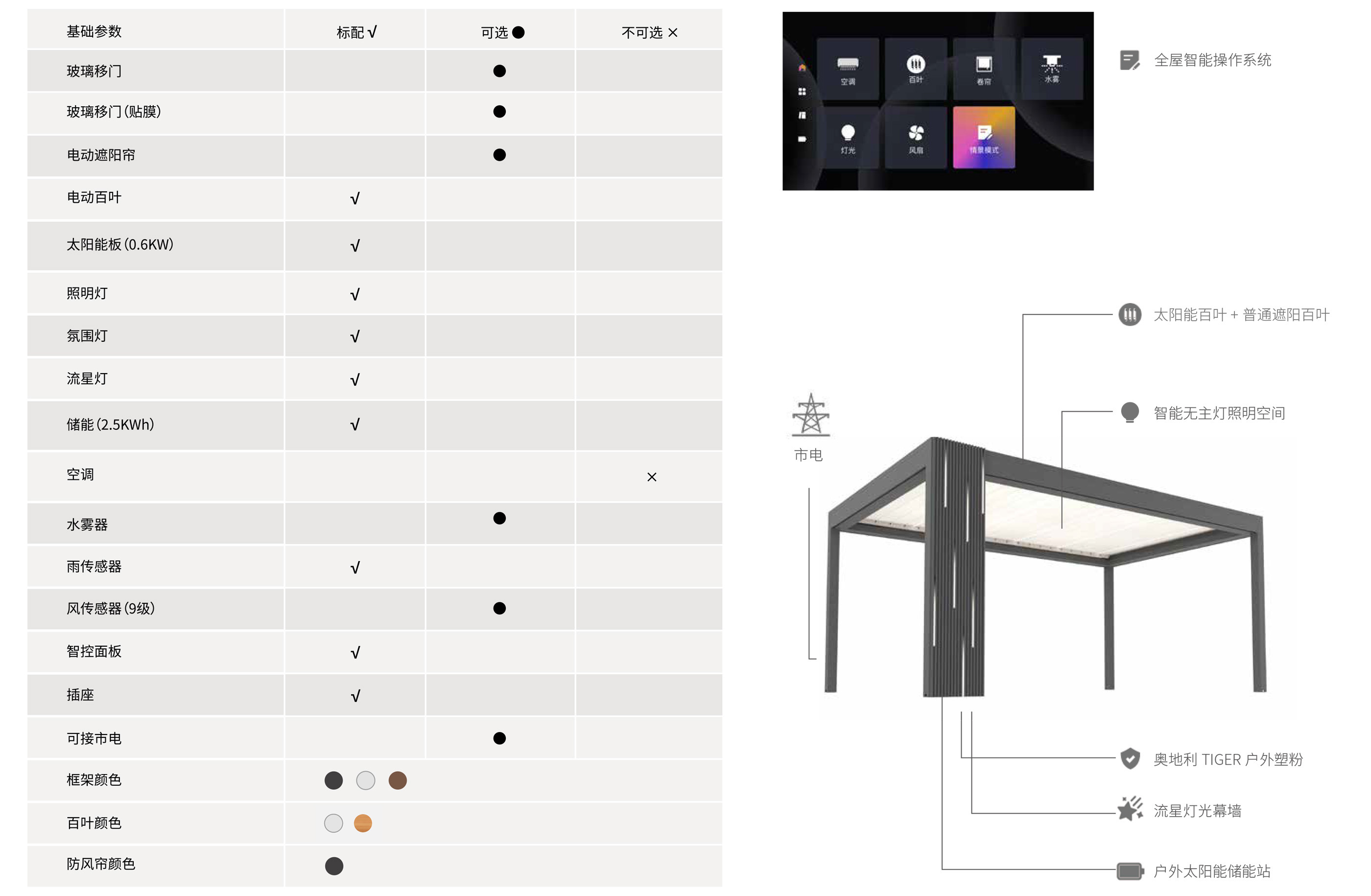 您可以在花园里享受生活,就像在房间里一样舒适。通过科技赋能让户外生活空间更智能,OMBRA欧铂纳智能观景棚提供不同的配置、颜色,更有多种型号可供选择,包括扩展型或独立型,满足客户的定制需求。